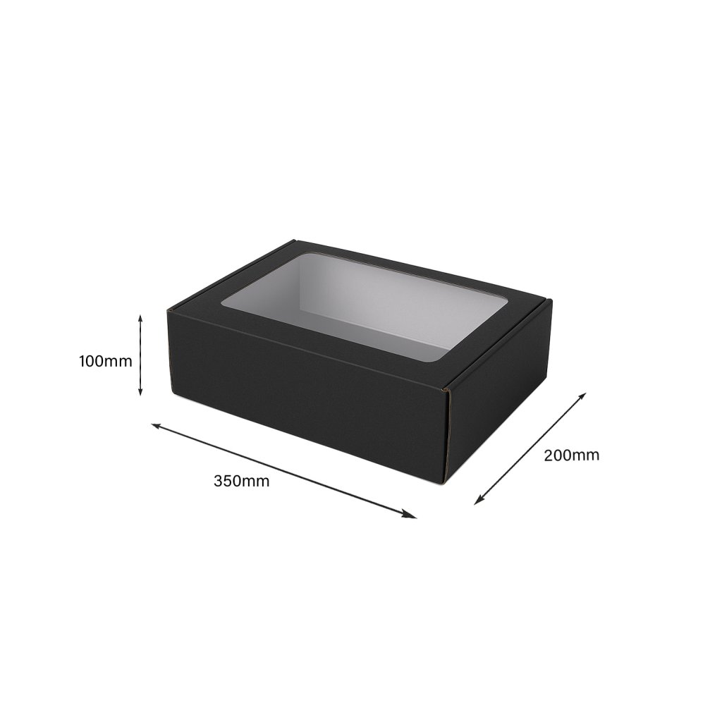 Darčeková krabica s priehľadným vekom | 350x200x100mm | čierna