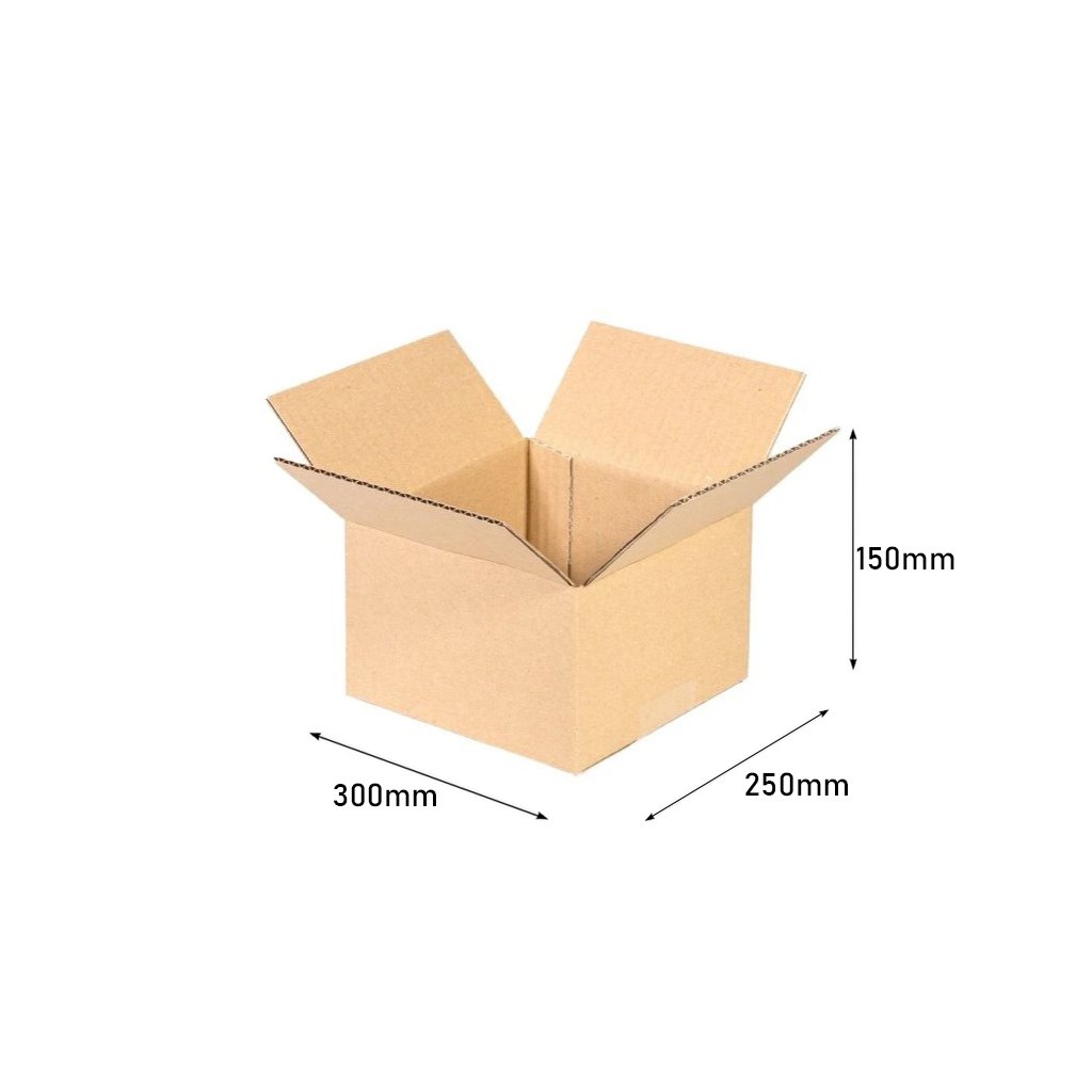 Kartónová krabica – 3VVL | 300x250x150mm, klopová krabica je vyrobená z 3 vrstvovej vlnitej lepenky.