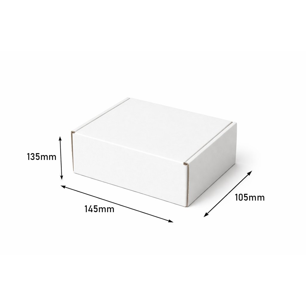 Poštová kartónová krabica s rozmermi 145x105x135mm je vyrobená z 3-vrstvovej vlnitej lepenky. Tento druh krabice uľahčuje balenie akýchkoľvek produktov bez použitia lepiacej pásky.