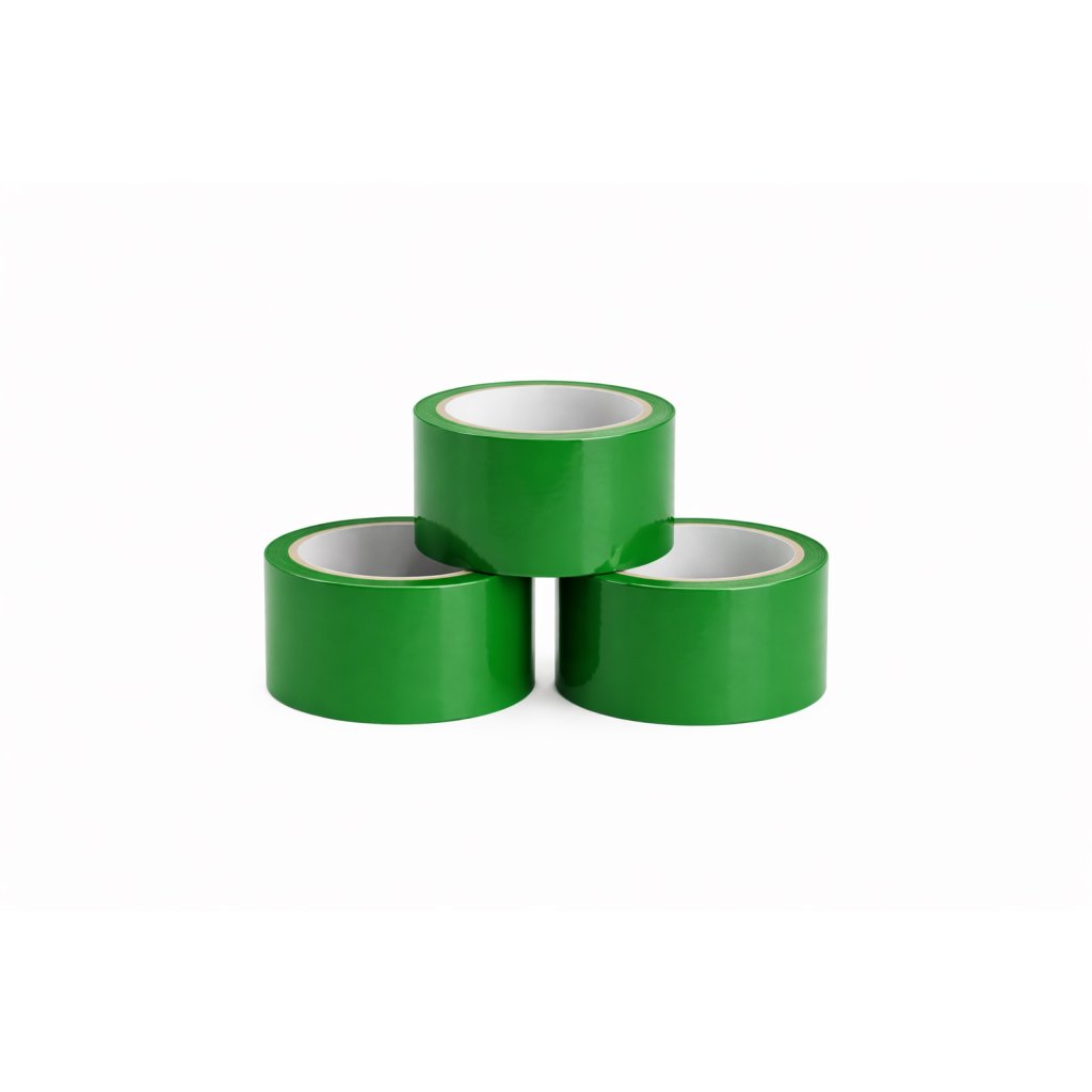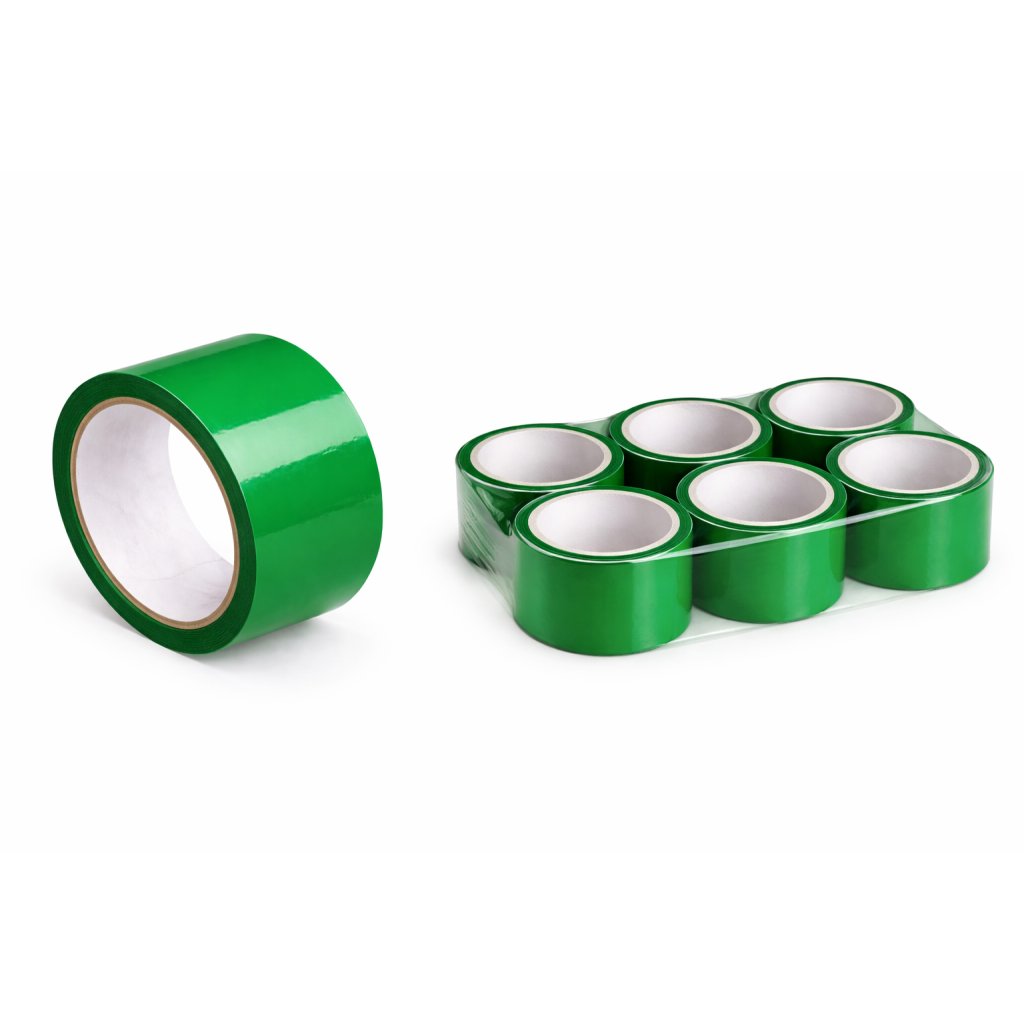 Zelená lepiaca páska je vyrobená z polypropylénu a používa sa na balenie rôznych druhov zásielok, prevažne darčekových balení, či zásielok pre deti. Je odolná voči vlhkosti a teplote teda je vhodným upevňovacím materiálom.