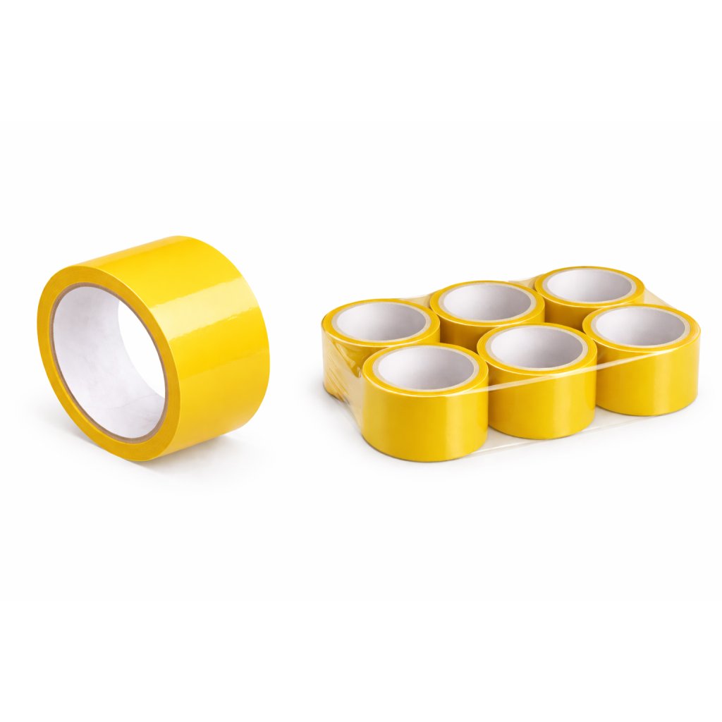Žltá lepiaca páska je vyrobená z polypropylénu a používa sa na balenie rôznych druhov zásielok, prevažne darčekových balení, či zásielok pre deti. Je odolná voči vlhkosti a teplote teda je vhodným upevňovacím materiálom.