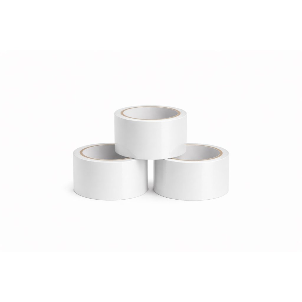 Biela lepiaca páska je vyrobená z polypropylénu a používa sa na balenie rôznych druhov zásielok, prevažne darčekových balení, či zásielok pre deti. Je odolná voči vlhkosti a teplote teda je vhodným upevňovacím materiálom.