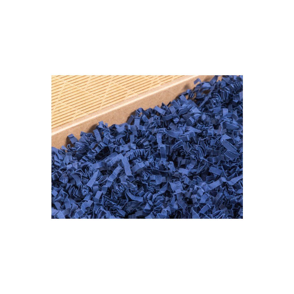 Papierová výplň do krabíc – basic, modrá je prírodný a ekologický výplňový a dekoračný materiál vyrobený z narezaných a skrútených papierových hárkov. Najčastejšie sa využívajú na vyplnenie prázdnych priestorov v prepravovaných balíkoch. Papierová výplň je ľahká a nemá výrazný vplyv na hmotnosť zásielky.