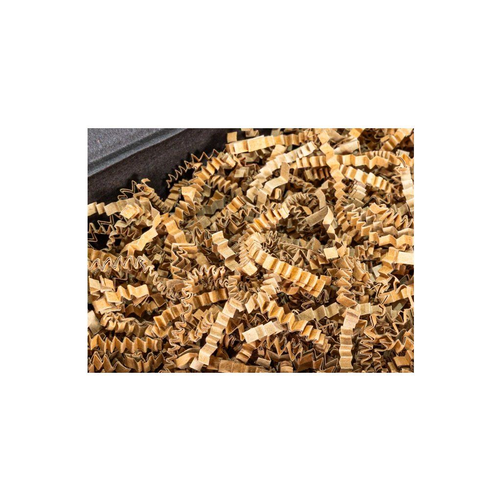 Papierová výplň do krabíc – Eko Kraft, hnedá je prírodný a ekologický výplňový a dekoračný materiál vyrobený z narezaných a skrútených papierových hárkov. Najčastejšie sa využívajú na vyplnenie prázdnych priestorov v prepravovaných balíkoch. Papierová výplň je ľahká a nemá výrazný vplyv na hmotnosť zásielky.