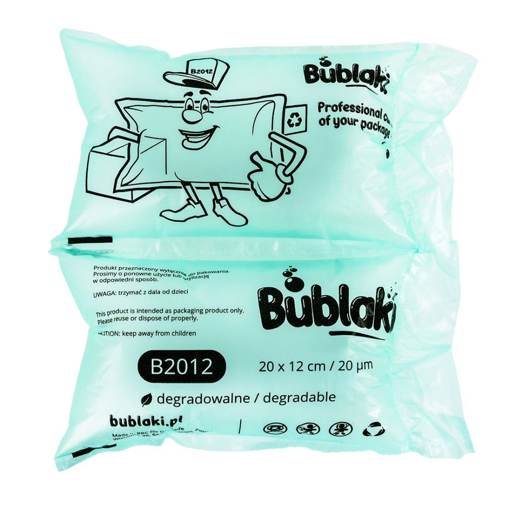 Fólia na výrobu vzduchových vankúšikov s rozmermi 20 x 12 cm je veľmi odolná a pomerne obľúbená výplň do balíkov. Jednotlivé vzduchové vankúšiky sú navrhnuté tak, aby spoľahlivo zabezpečili produkty počas prepravy. Veľmi obľúbené sú aj preto že sú recyklovateľné a dajú sa opakovane použiť.